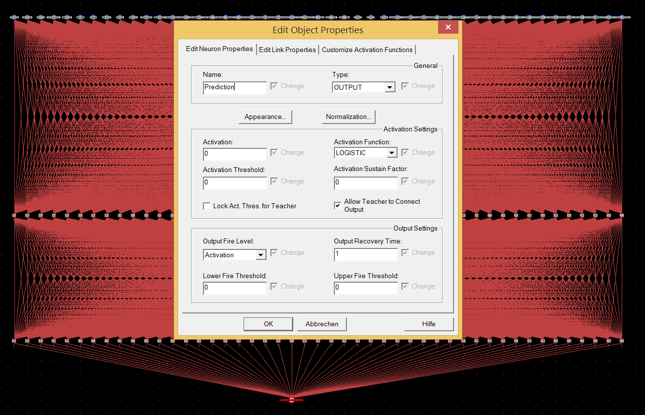 Außerdem habe ich Screenshots von den Einstellungen der Neuronen angefertigt.