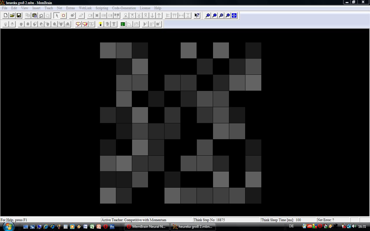 2. Mir ist bewusst, dass zu diesem Zweck Membrain vermutlich erstmal die jeweiligen Muster erkennen muss. Wahrscheinlich ist hierfür eine Kategorisierung mittels "unsupervised learning" hilfreich. Mein Problem ist jedoch, dass ich für den "Teacher" die Werte von Input Units benötige. Meine Muster liegen aber als Aktivierungen von Hidden Units vor. Wie kann ich die Werte der Hidden Units in Werte von Input Units transformieren? Über eine einfache Vernetzung HU -> IU geht das ja offenbar nicht...