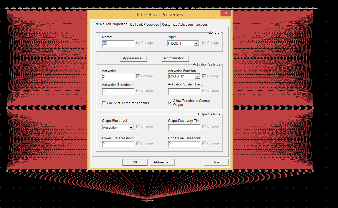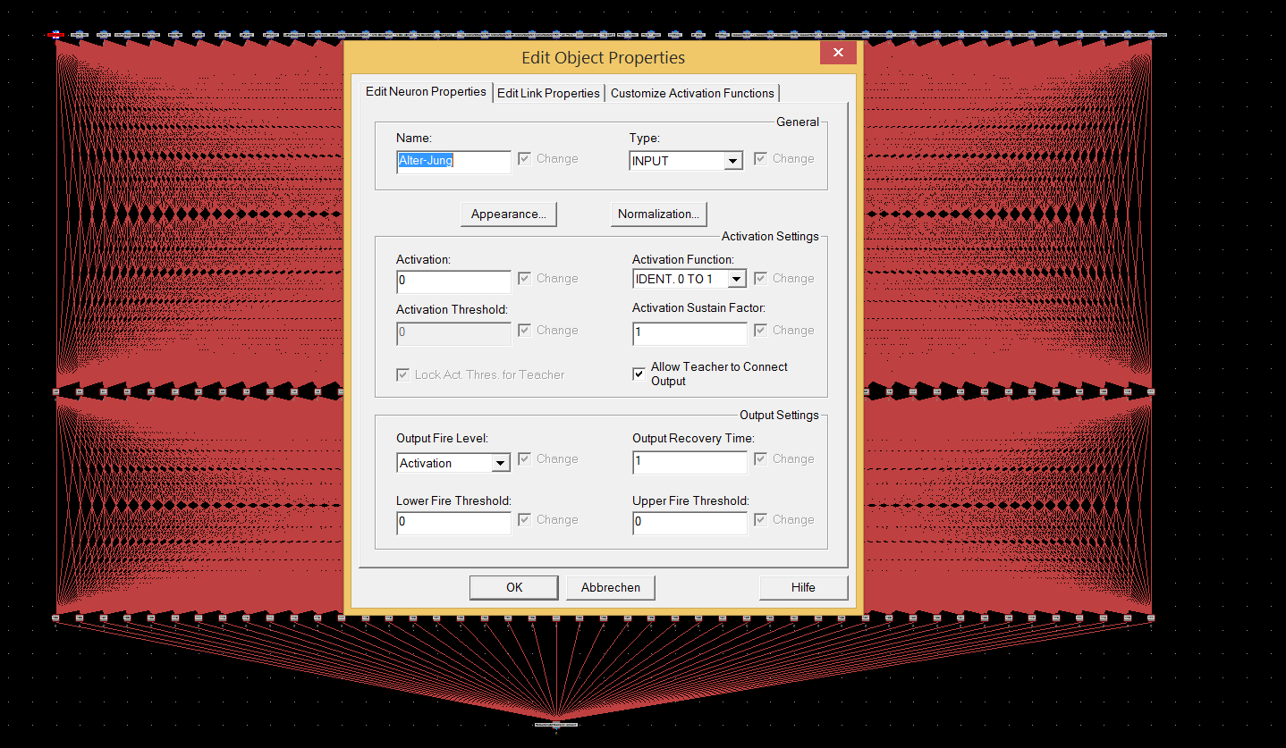 Außerdem habe ich Screenshots von den Einstellungen der Neuronen angefertigt.